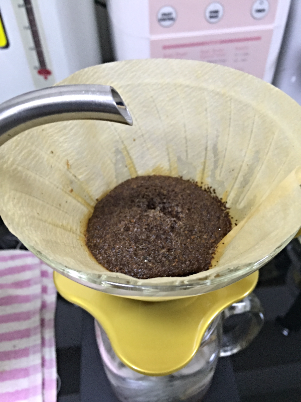 Pouring 40 ml off the boil water in circular motion and let it bloom for 40 secs.